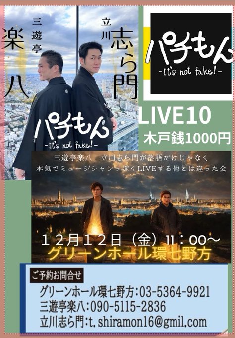 立川志ら門の各SNSのDMでも予約受付中!